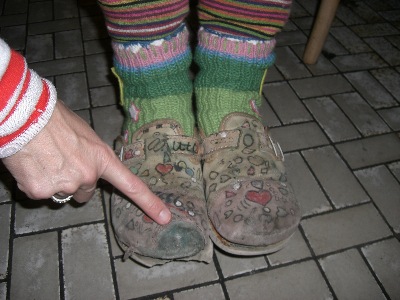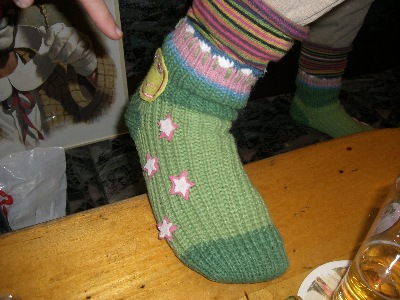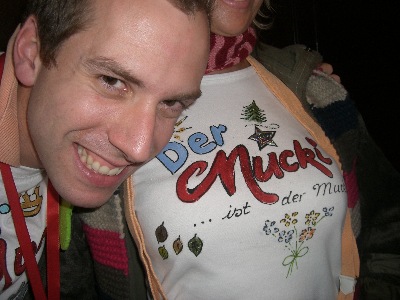 Ute hatte einheitliche Shirts für uns gemalt und ich hatte einen Mucki-Orden gebastelt. Ein Outfit-Highlight waren aber auch Ute's Schuhwerk und die dazu passende Socken. Ich sach nur "muckiwürdig"!